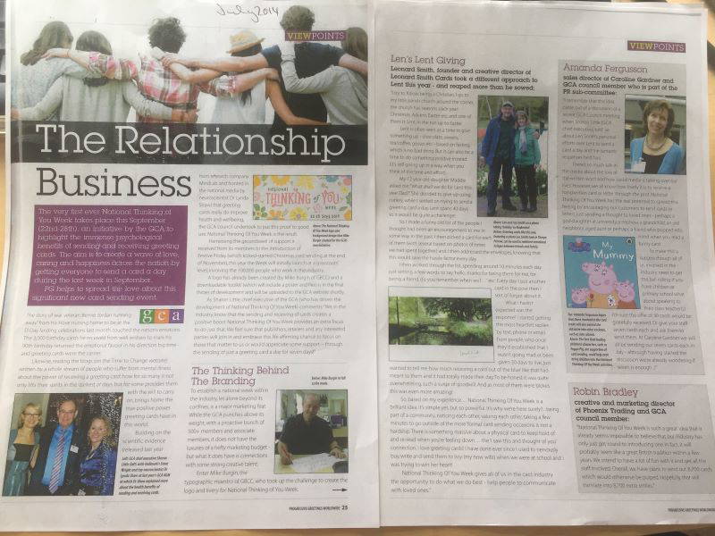 The GCA set up a Gallery on the consumer-facing Thinking of You Week website, with members invited to send in a jpegs of cards and a link to an online shop. The GCA promoted this far and wide – even ending up on ITV news!
