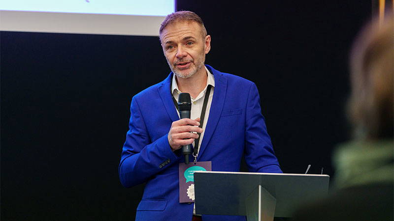 Mark Callaby , co-owner of Ohh Deer, GCA Council member and Chair of the GCA Diversity & Inclusion sub-committee, thanked Geoff and spoke about the importance of engaging with the next generation of card designers. Mark then welcomed Jon May to the stage.