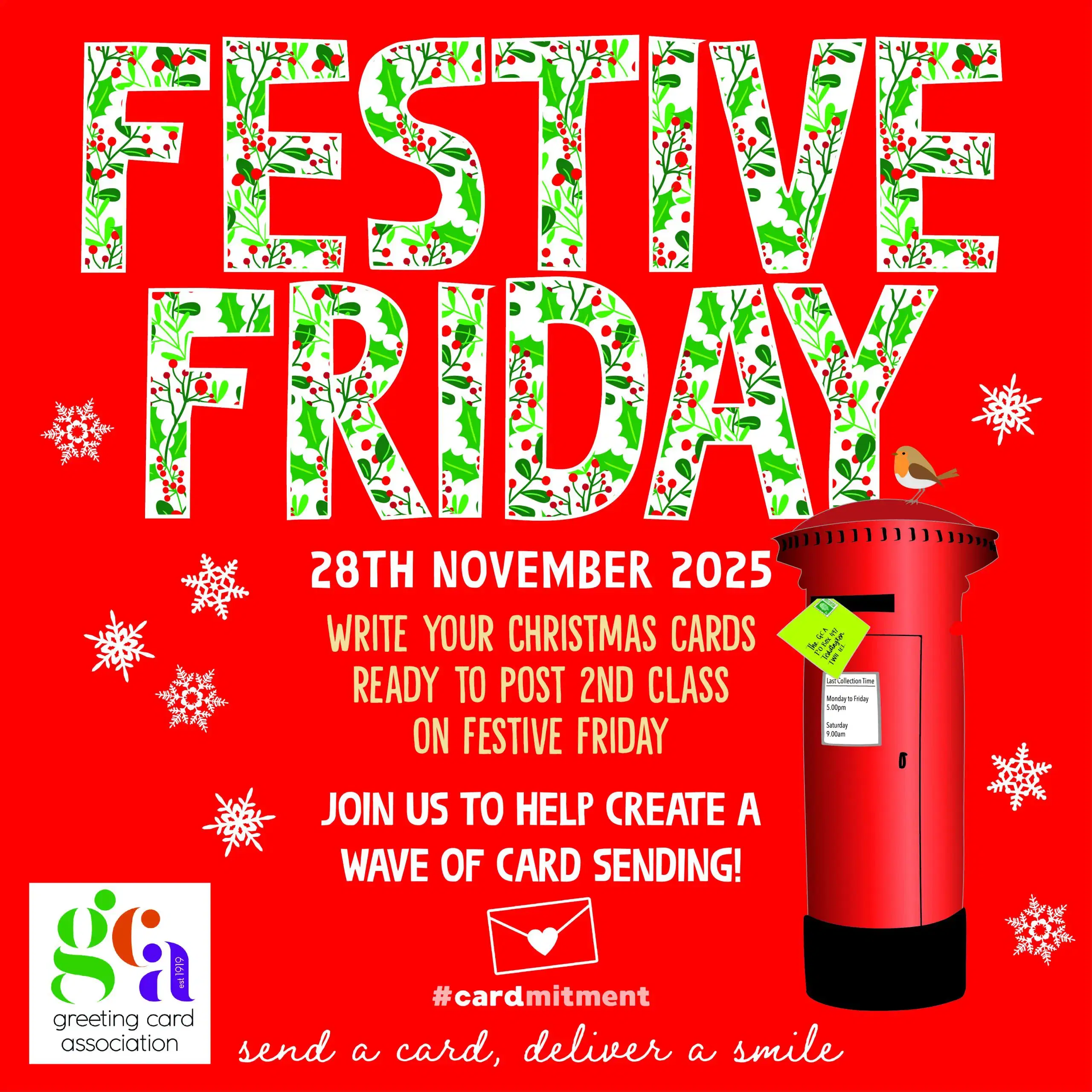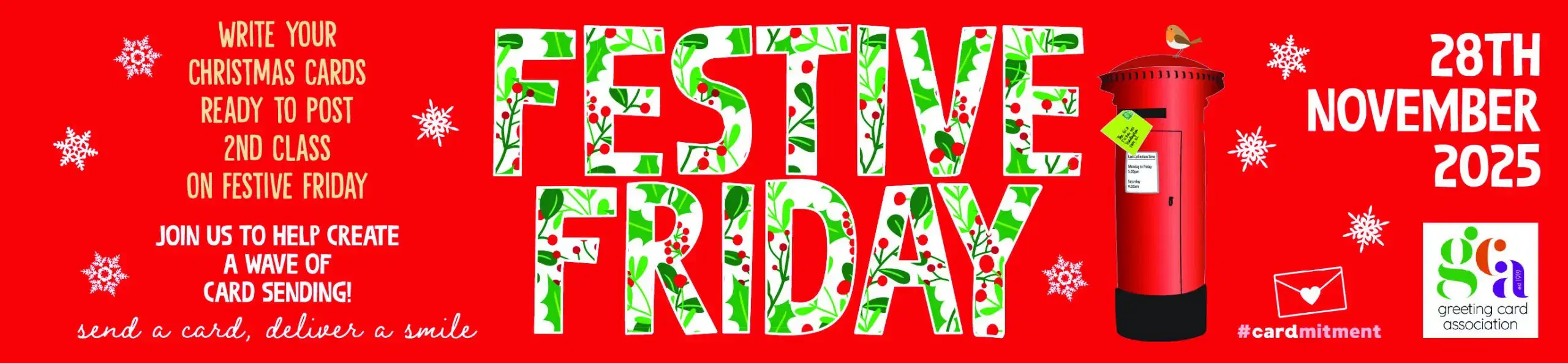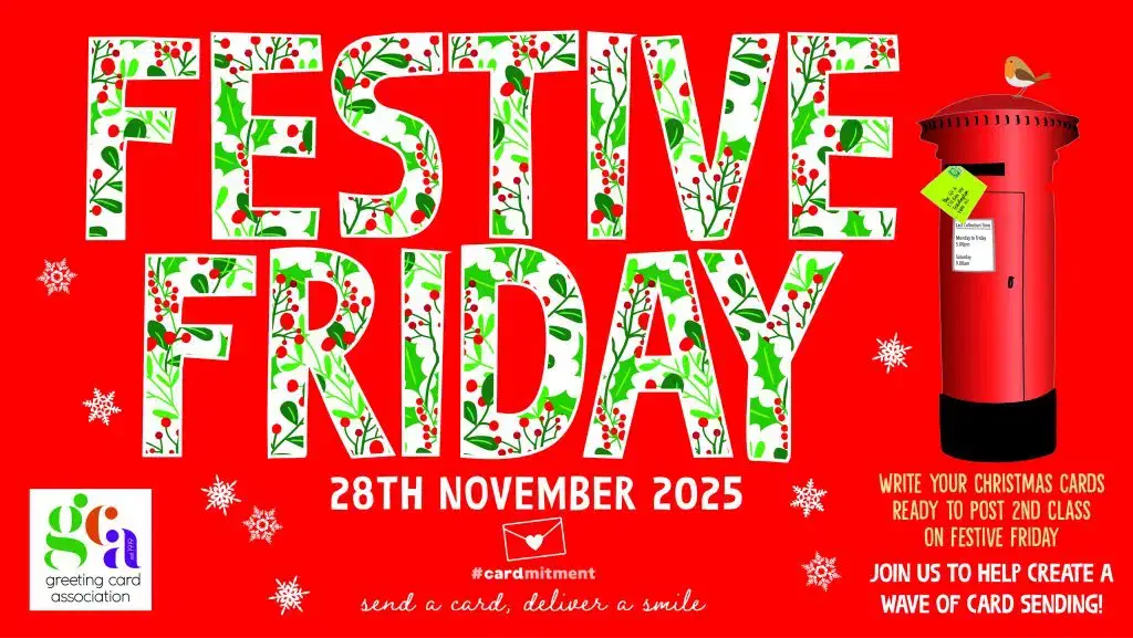 Festive Friday 2025 is on the 28th of November. Festive Friday is the day when everyone in the greeting card industry, and card lovers everywhere, send their Christmas cards. Receiving Christmas cards reminds people to send theirs; so Festive Friday starts the annual exchange of Christmas cards! Find out more here!