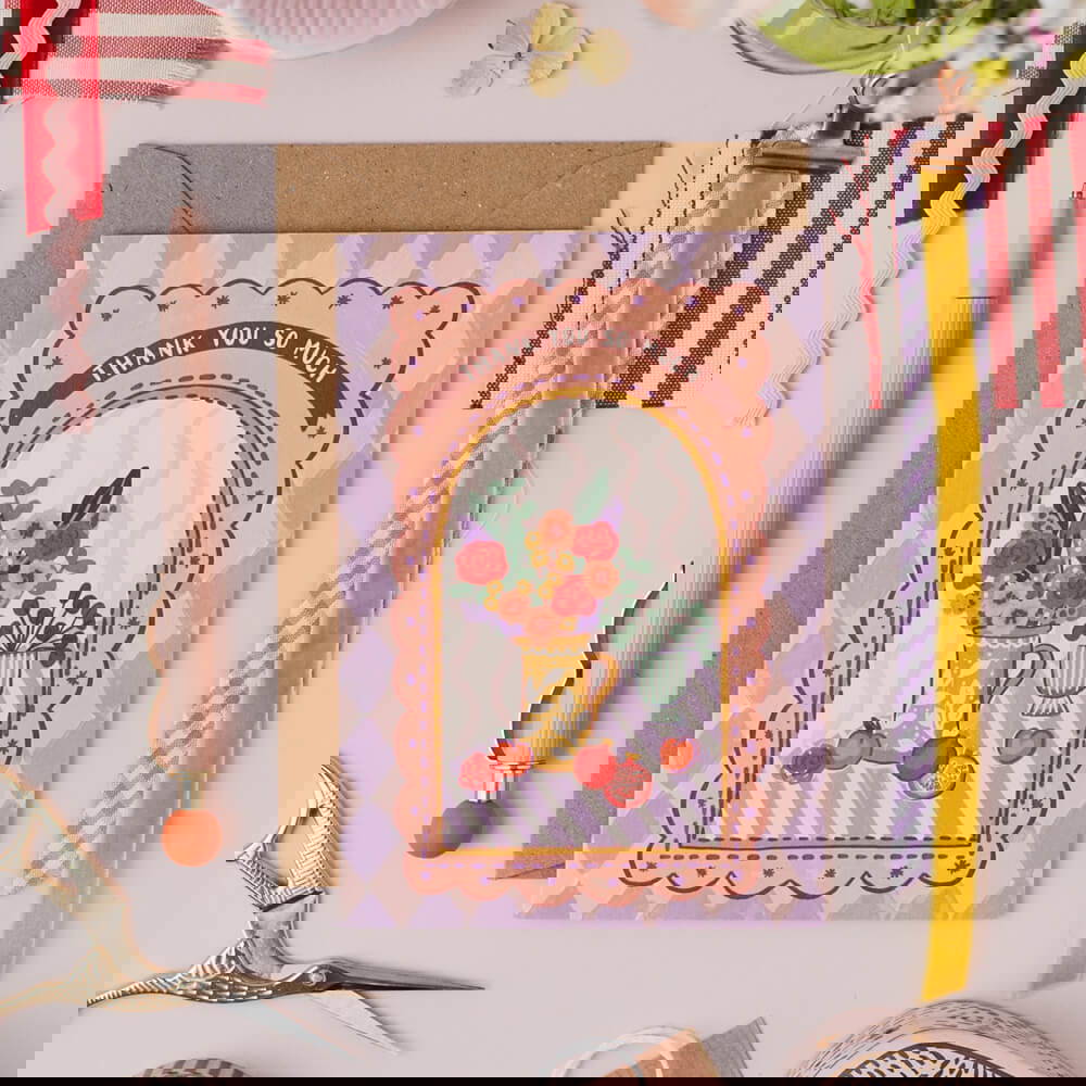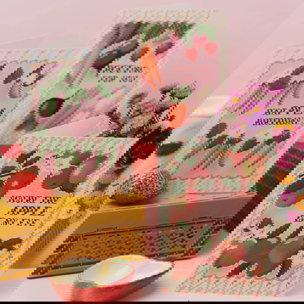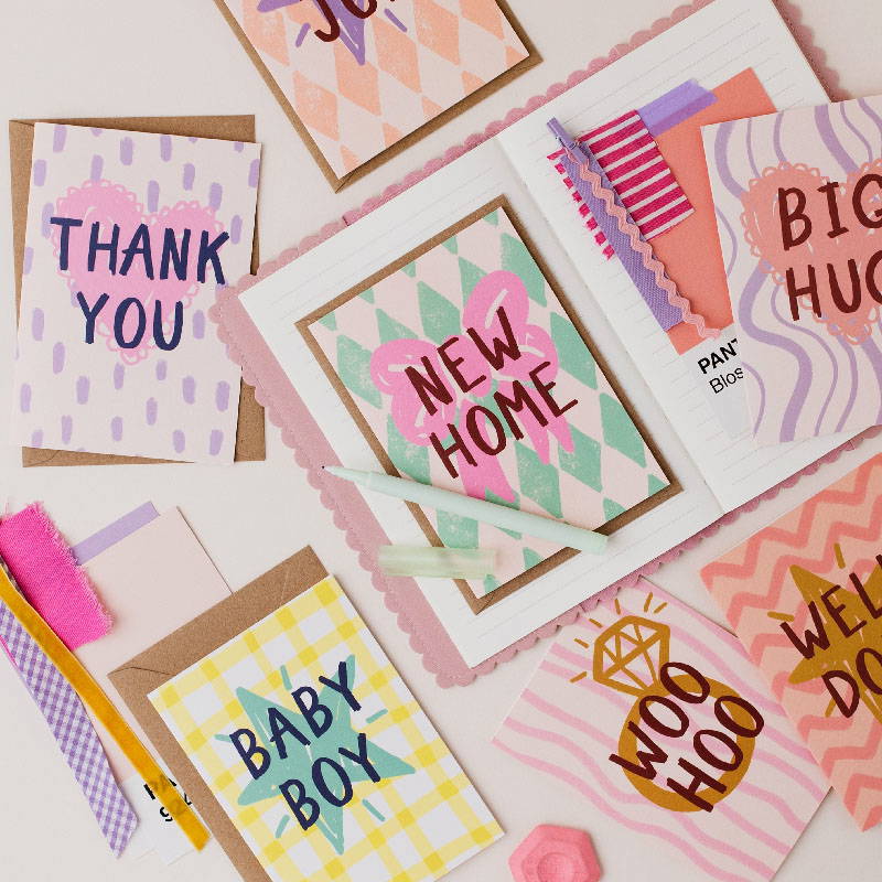 Welcome to my studio! I create hand lettered greeting cards full of colour, joy, and style. My designs are inspired by everything from impressionist paintings and textile prints to fruit and florals. As a former fashion and print designer, I love weaving intricate patterns into my work, drawing inspiration from the latest fashion and interior design trends.