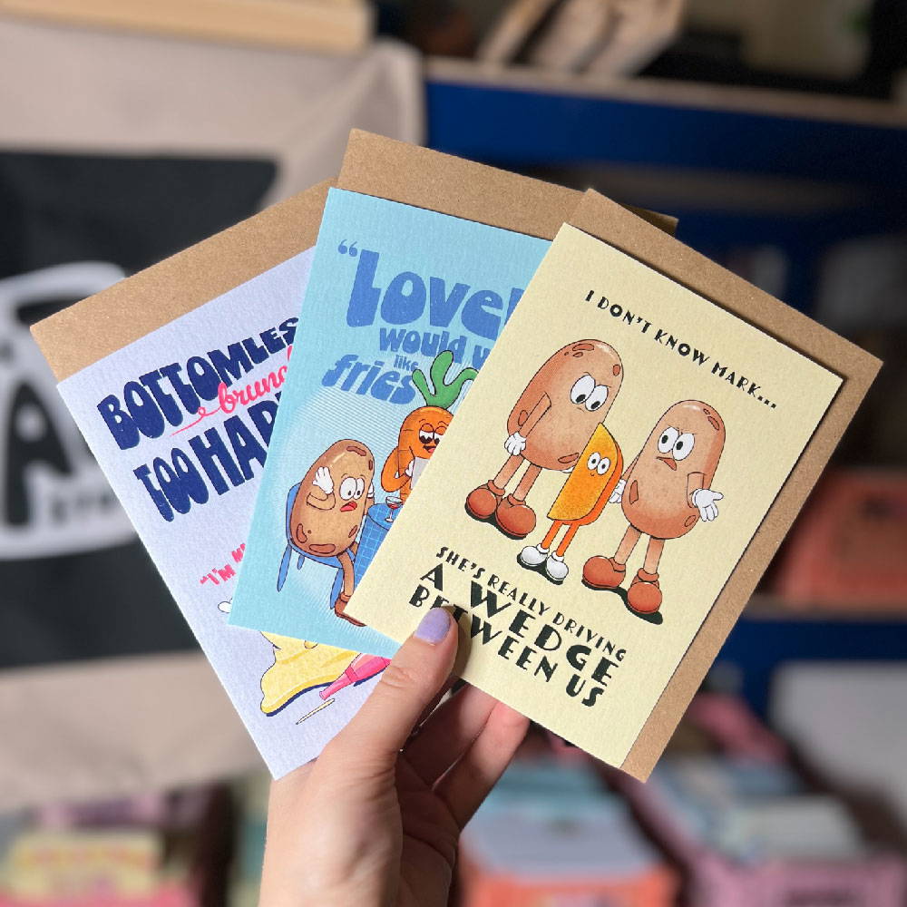 Blending a retro colour palette with a charming cartoon style, Little Potato Studio offers light-hearted designs perfect for any occasion. From everyday greetings to special moments, each card is packed with personality and humour.