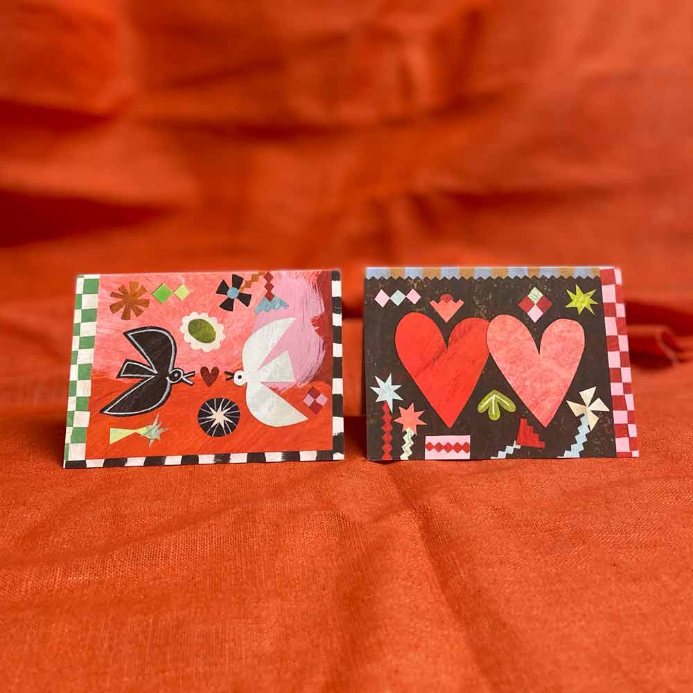 Each design starts life as a drawing, collage, or painting made by Alice in her studio in Mortlake, South London. The artwork is digitised so that every brushstroke, inked line and texture is visible in the finished product. Our cards are both playful and tactile, and each one is proudly designed and made in the UK.Â