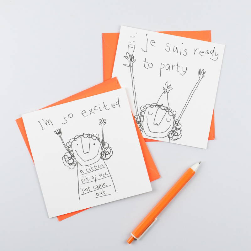 We are a multi award winning company, determined to bring to you the very best in design, quality and customer service. Using Rosie’s unique designs we create papery lols and fun products taking inspiration from the slightly inappropriate side of everyday life, and occasionally wine.