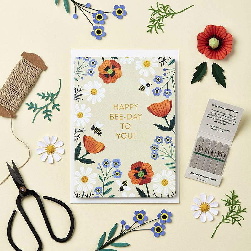 We recently launched BLOOM, our seed card collection that features beautifully illustrated floral designs, finished with satin gold foil and smooth rounded corners. Each card comes with five seed sticks and simple growing instructions, from bee-friendly wild flowers, to aromatic herbs and sweet British strawberries. Both the cards and seed sticks are made in the UK with environmentally sustainable material.