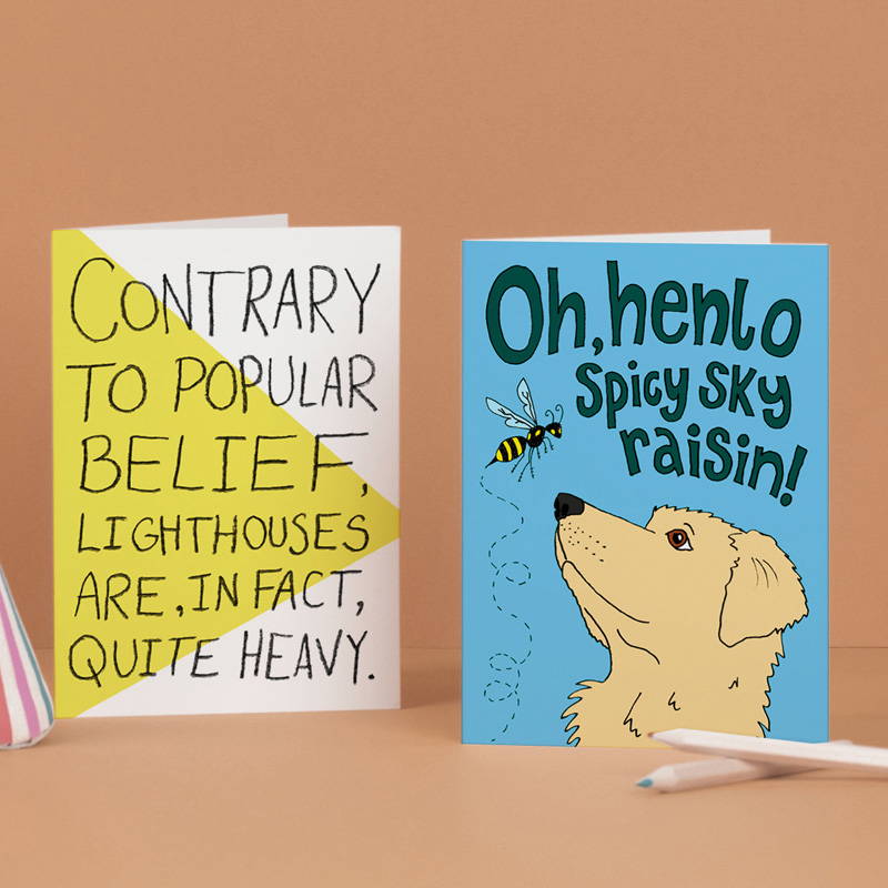 Short story: I started my business in 2011 after working part-time in various card shops that sold greetings cards that I found far from inspirational. I decided to do something about that, and The Curious Pancake blossomed into life! I enjoy creating typographical cards full of imperfection and my own weird observations on life.