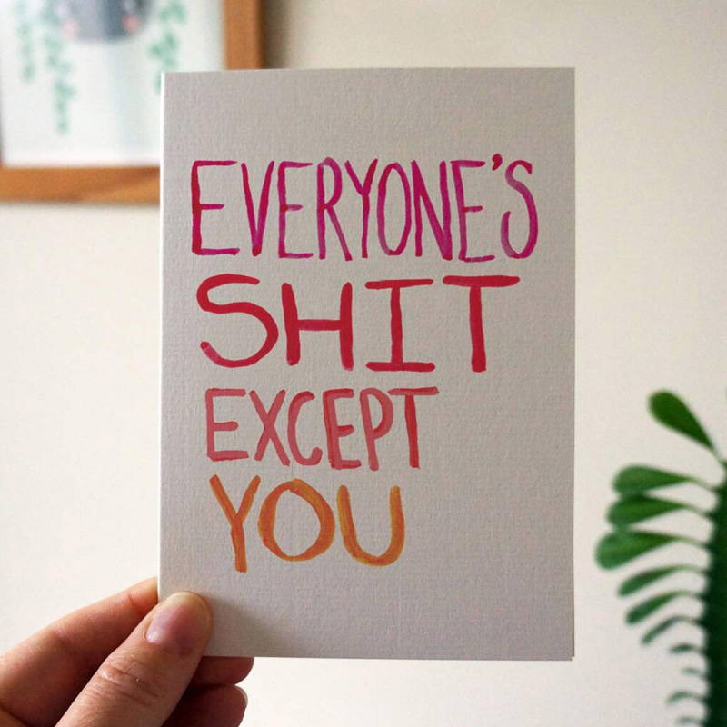 So, what inspires me? Well, I’m a bit of a closet stand-up, therefore many of my cards are quite wordy and typography-rich! I also love a random swear (it’s good for you – scientifically proven!) and it’s nice to share swears with friends, don’t you think?!