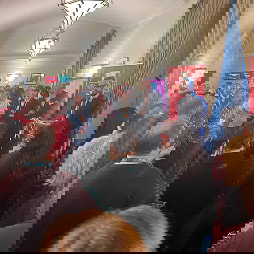 The event was hosted by Adam Jogee MP for Newcastle-under-Lyme (pictured speaking below), a passionate card sender who is eager to visit a local GCA member.