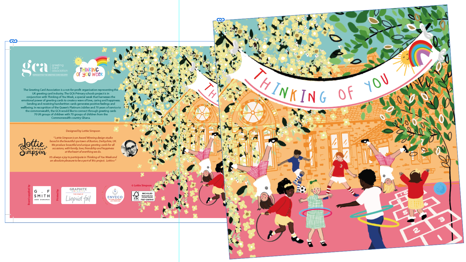 Graphite Creative printed the cards for this project with G.F Smith supplying the board. ENVECO supplied the envelopes, The Art File donated notebooks and Ohh Deer donated pens to the Ghanaian children to use to write their cards. Thank you all; this really is a GCA team effort!